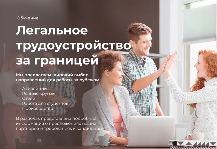 Мы предлагаем широкий выбор направлений для работы за рубежом — вы обязательно найдете вариант, который подойдет именно вам.